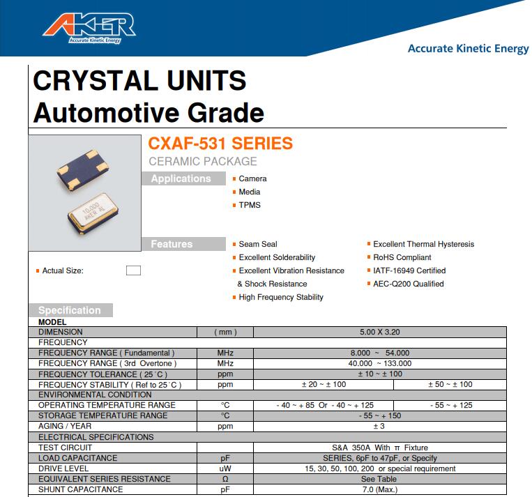 安基晶振,CXAF-531晶振,5032四腳晶振