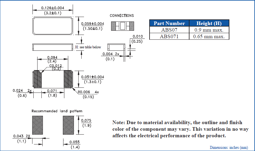 艾博康晶振,ABS07系列晶振,ABS07-120-32.768kHz-T晶振超小型表面貼片型SMD晶振,最適合使用在汽車電子領域中,也是特別要求高可靠性的引擎控制用CPU的時鐘部分.