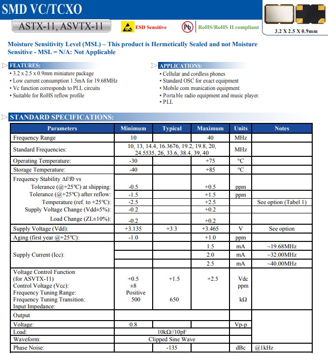 進口艾博康晶振,ASTX-H11系列晶振,ASTX-H11-26.000MHZ-T晶振小型貼片石英晶振,外觀尺寸具有薄型表面貼片型石英晶體諧振器,特別適用于有小型化要求的市場領域,比如智能手機,無線藍牙,平板電腦等電子數碼產品.晶振本身超小型,薄型,重量輕,晶體具有優良的耐環境特性,如耐熱性,耐沖擊性,在辦公自動化,家電相關電器領域及Bluetooth,Wireless LAN等短距離無線通信領域可發揮優良的電氣特性,滿足無鉛焊接的回流溫度曲線要求.