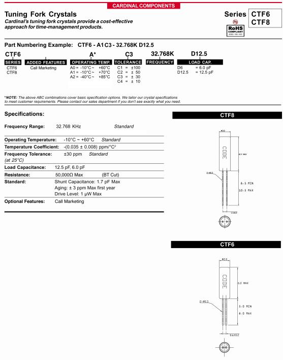 美國Cardinal晶振,CTF8圓柱音叉晶體,CTF8-A1-C4-32.768K-D12.5晶振