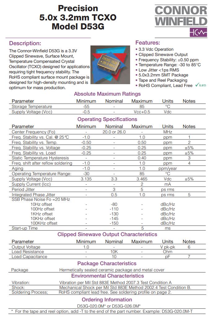 ConnorWinfield Crystal,D53G型號晶振,5032溫補晶振