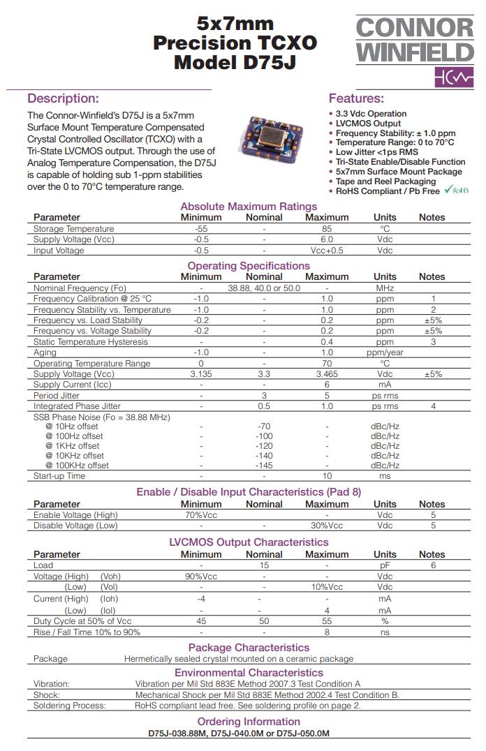 ConnorWinfield Crystal,D75J型號晶振,進口晶振