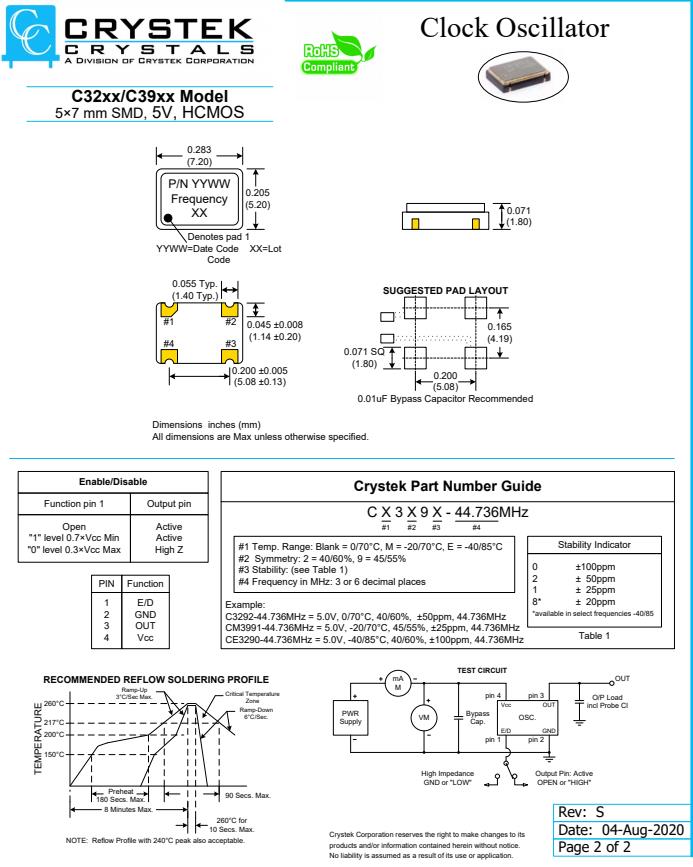 Crystek晶振注意事項: