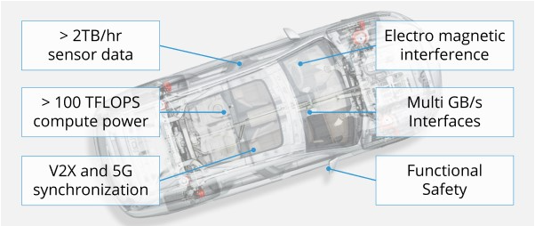 自動駕駛仍然是最重要的汽車趨勢之一。雖然該行業仍處于2級和3級,但驅動自動化正在快速發展,4級正在迅速接近。隨著電子系統變得越來越復雜,并且增加了更多的傳感器來實現自動化,車輛每小時可以產生超過20TB的數據。這種數據洪流需要無縫通信和高級處理能力,以及高達100TFLOPS的計算能力。