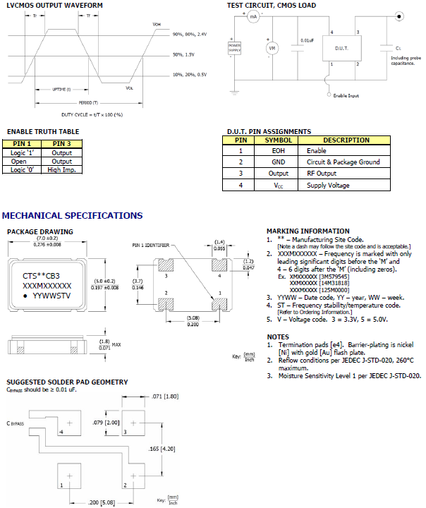 CB3LV-3I-12M000000,CTS西迪斯晶振,7050有源四腳晶振