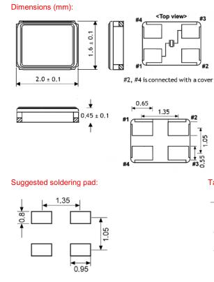 | frequency tolerance at +25°C | standard ±30 ppm, available ±30 ~ ±50 ppm |