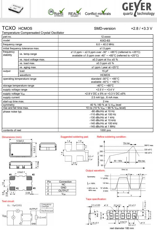 GEYER格耶晶振,KXO-83有源晶體振蕩器,TCXO溫補晶振