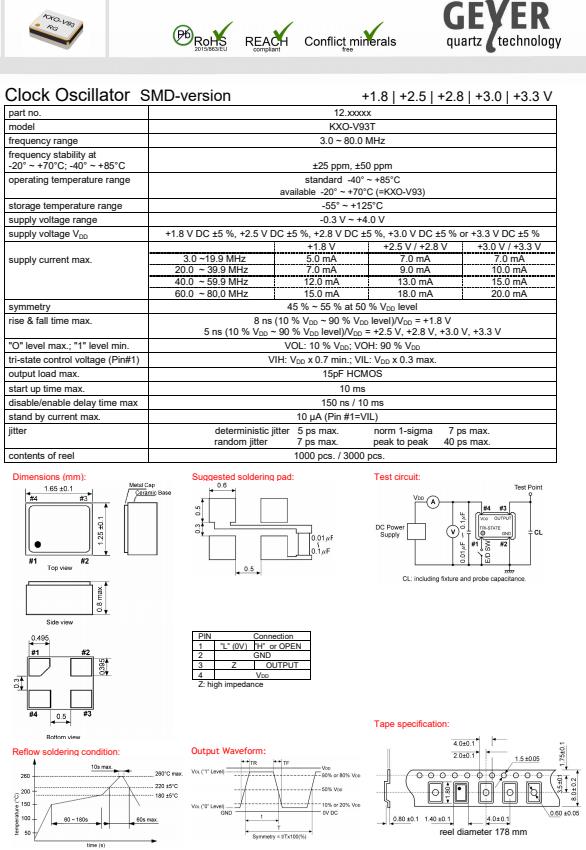 更多>>GEYER格耶晶振,KXO-V93T超小型晶振,有源晶體振蕩器