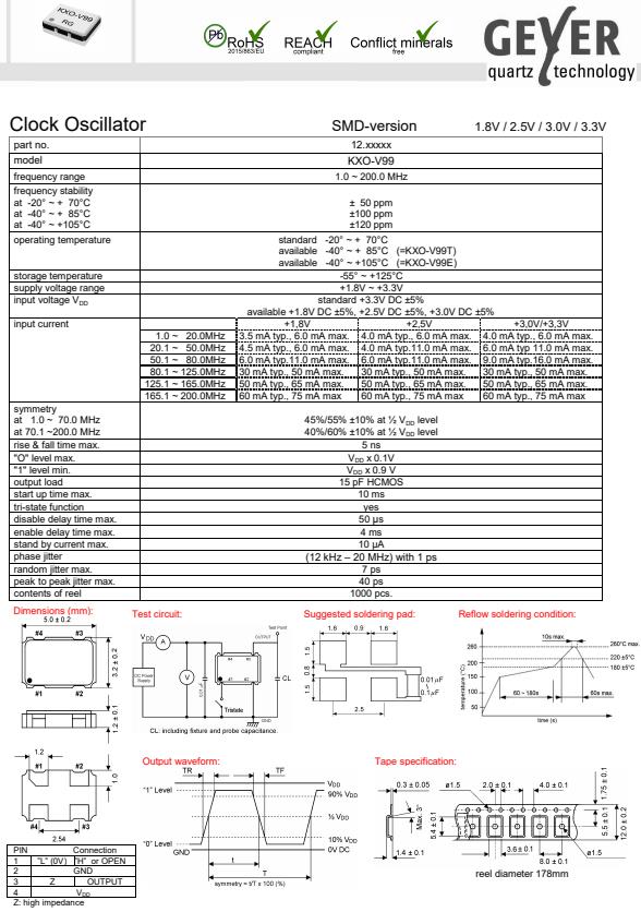 更多>>GEYER進(jìn)口晶振,KXO-V99時(shí)鐘振蕩器,5032mm有源晶振