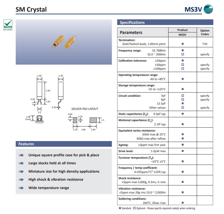 GolledgeCrystal,MS3V晶振,音叉型晶體諧振器