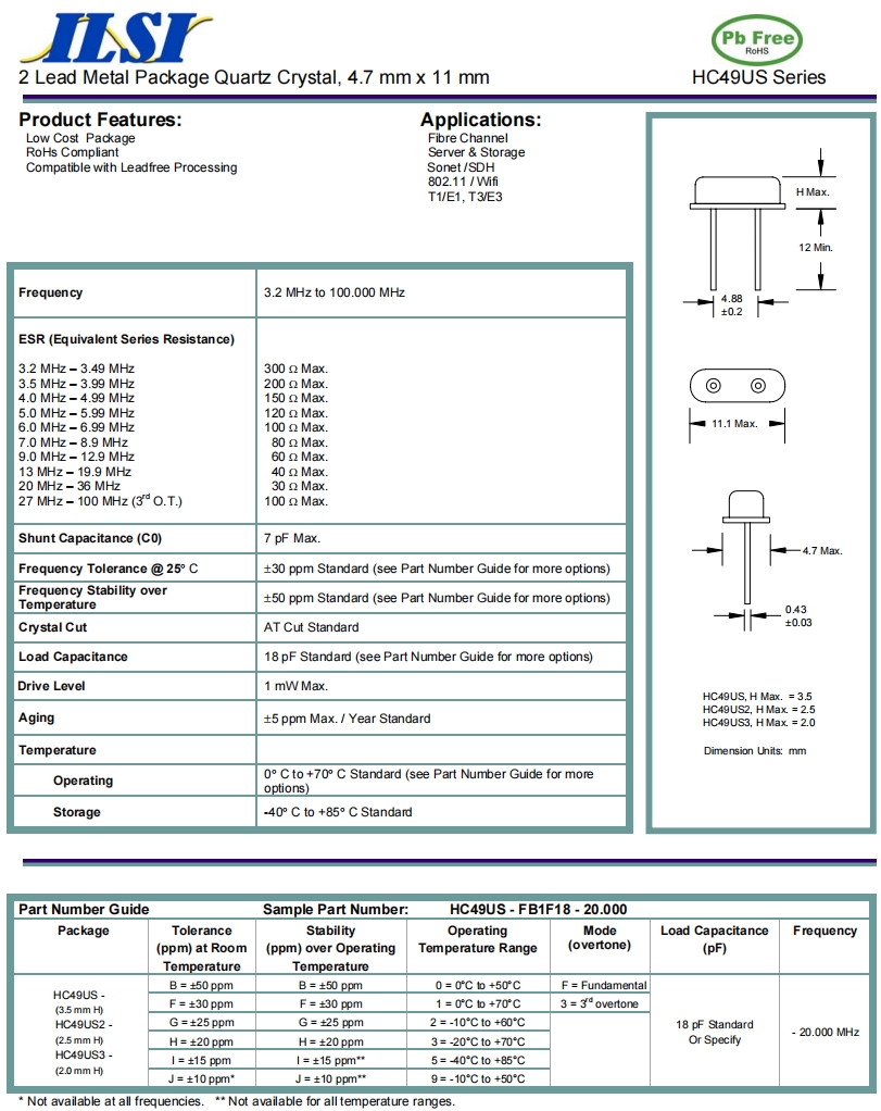 | ILCX08-HH5F18- 8.000 MHz | ILSI | ILCX08 | -40°C ~ 85°C | 8 MHz | ±20ppm | 18 pF |