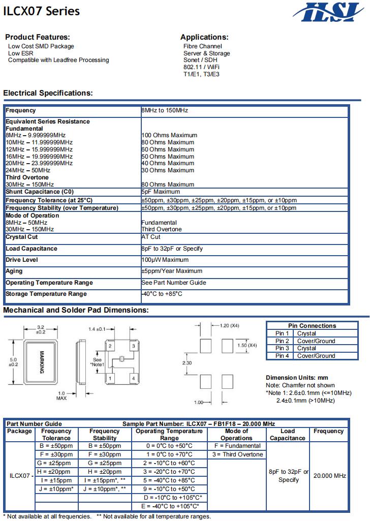 | ILCX07-HB3F18- 20.000 MHz | ILSI | ILCX07 | -20°C ~ 70°C | 20 MHz | ±20ppm | 18 pF |