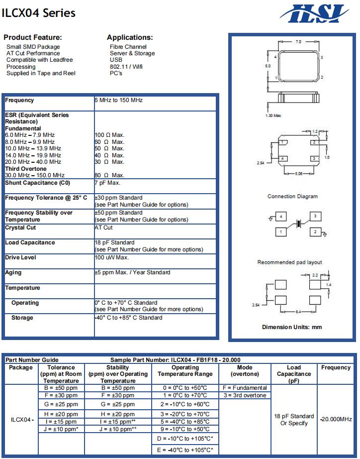 | ILCX07-FB3F13-16.000MHz | ILSI | ILCX07 | -20°C ~ 70°C | 16 MHz | ±30ppm | 13 pF |