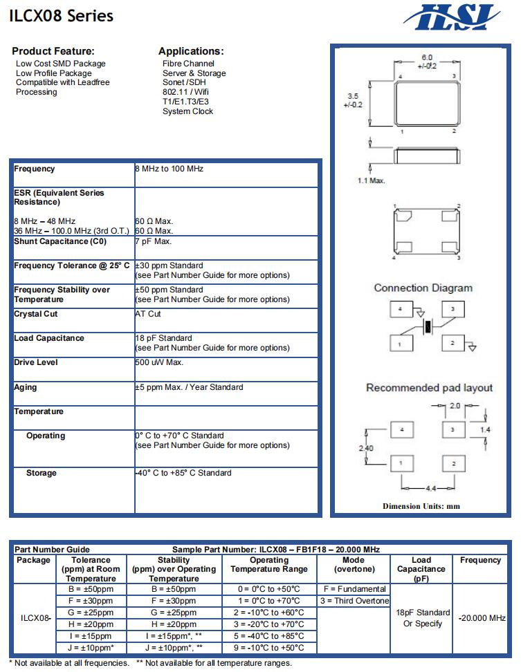 | ILCX08-JG5F18- 24.000 MHz | ILSI | ILCX08 | -40°C ~ 85°C | 24 MHz | ±10ppm | 18 pF |