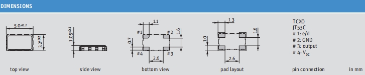 Jauch溫補晶振,O 26.0-JT53C-A-G-3.3-LF,6G移動無線電晶振尺寸圖
