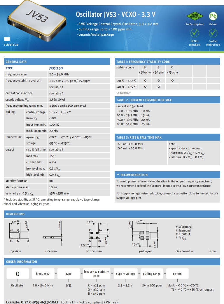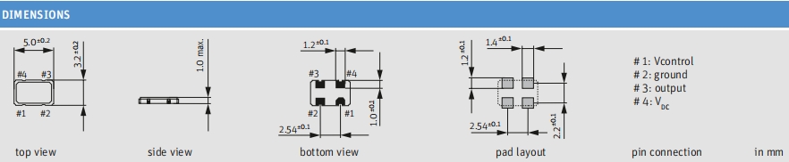 Jauch壓控晶振,O 48.0-JV53-G-3.3-10-LF,6G高端晶振尺寸圖