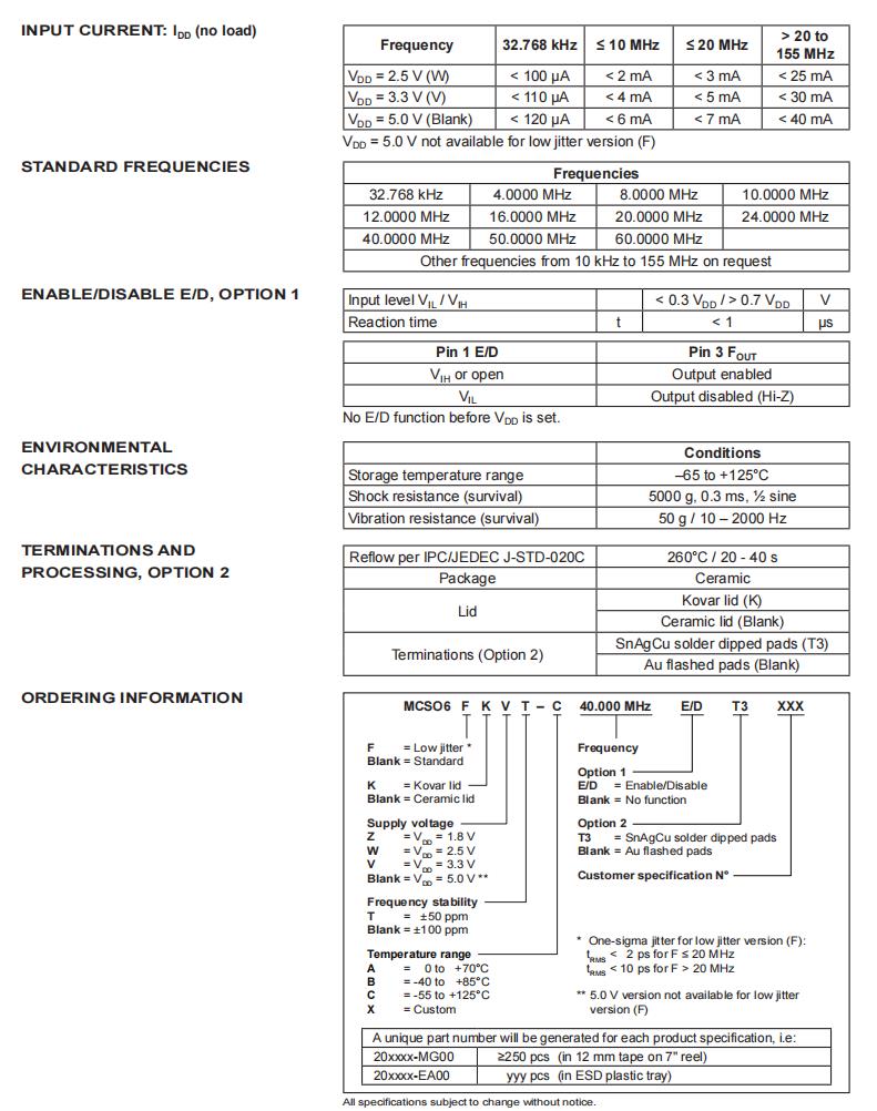 MCSO6FKVT–C-40.000MHz-E/D,6G無線網絡晶振,3522mm貼片晶振規格表