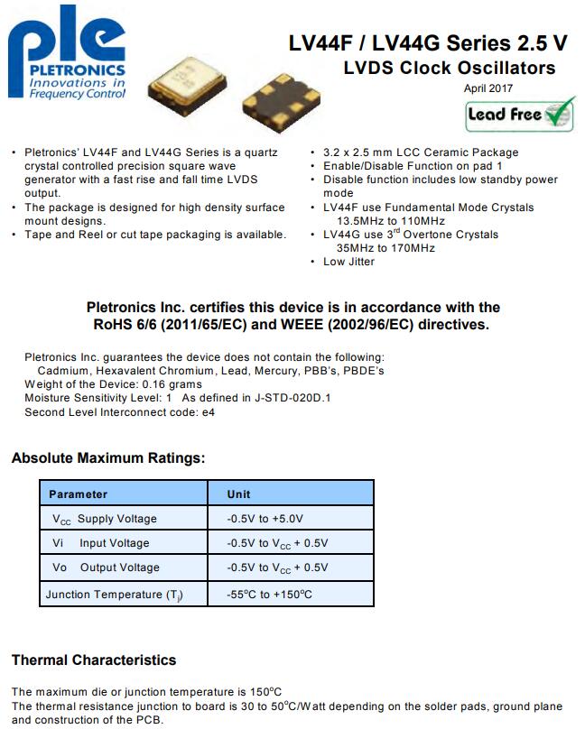 Pletronics晶振,LV44G,LV44F晶振,3225有源晶振