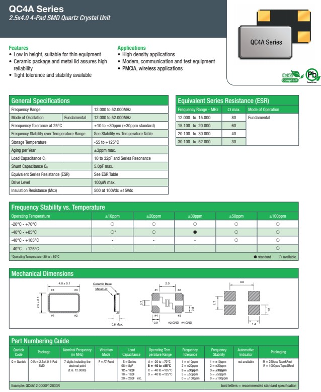 QANTEK晶振,QC4A晶振,4025四腳晶振