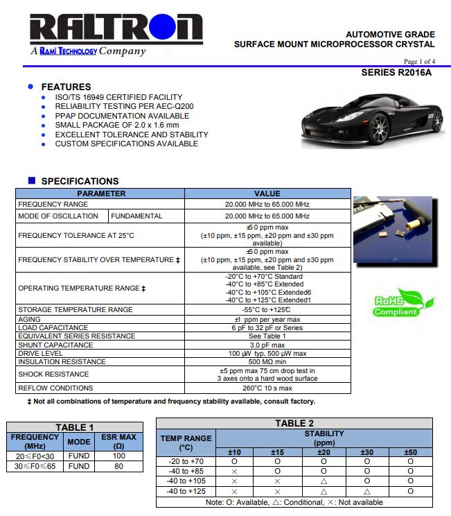 Raltron晶振所生產(chǎn)的頻率元件以及使用: