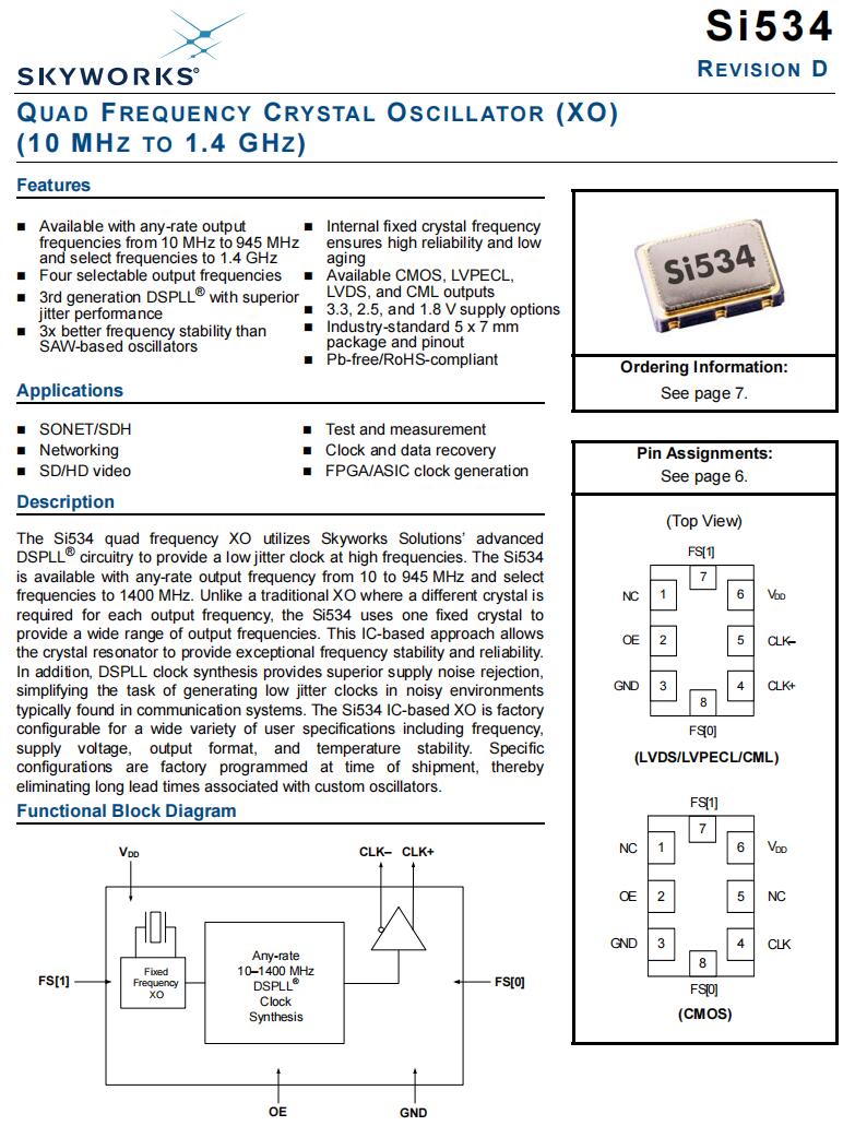 | 535FC125M000DGR | Skyworks Solutions Inc. | Si535 | 125 MHz | LVDS | 2.5V | ±7ppm |
