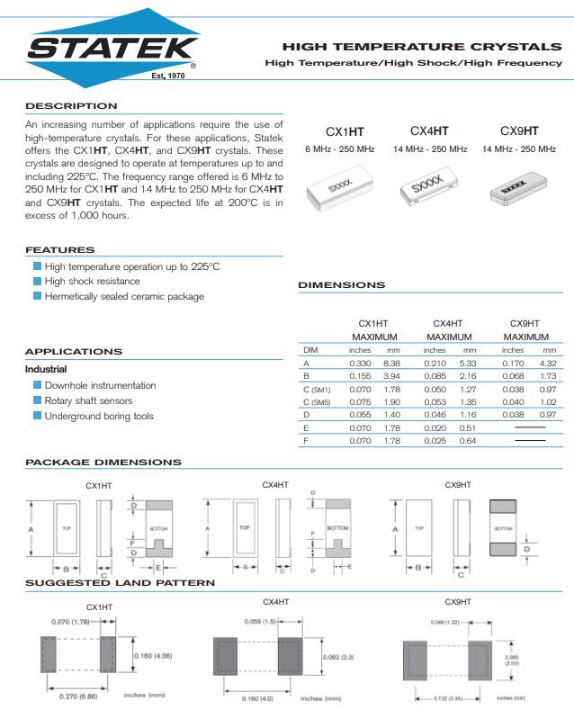 更多>>美國(guó)STATEK晶振,CX1HT晶振,8038無源晶振