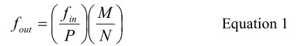 典型的整數(shù)PLL包括預分頻器(P),反饋分頻器(M)和后分頻器(N),如圖所示在圖1中.輸出頻率由定義等式1.