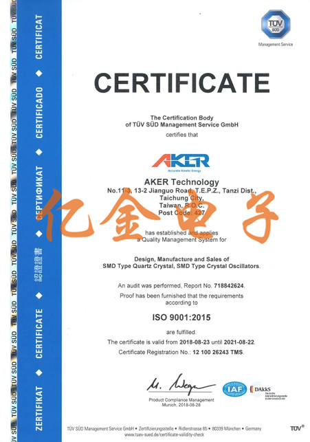 AKER Crystal安碁科技為石英晶振,貼片晶振,晶體振蕩器專業制造商,一直致力于提供給顧客高品質的產品.成立于1990年,是一家全球性高科技公司,以技術為導向,為各領域產品提供設計和制造各種頻率控制解決方案.安基晶振公司為了能不斷地提供顧客更優質的產品,借著ISO9001及TS16949等品質管理系統的導入,以便能提升公司內全體人員之品質觀念,進而達到品質保證的目的.