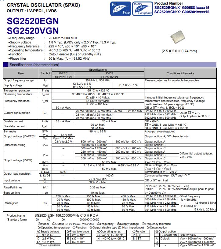 SG7050VAN 125MHz 差分晶振 LVDS輸出