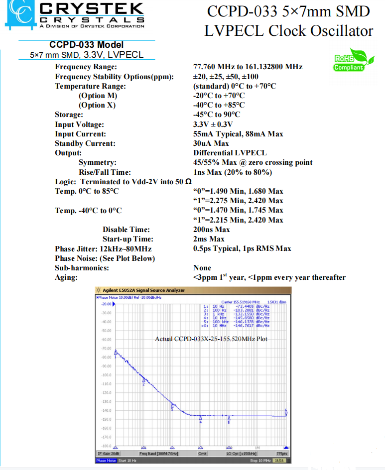| CCPD-033X-25-155.520 | Crystek晶振 | CCPD-033 | XO (Standard) | 155.52MHz | ±25ppm |