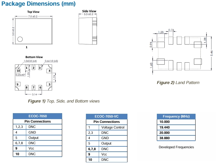 ECOC-7050 是一款 7.0 mm x 5.0 mm LVCMOS 恒溫晶振 (OCXO),非常適合 5G、小基站、SyncE 和 IEEE 1588 應用。