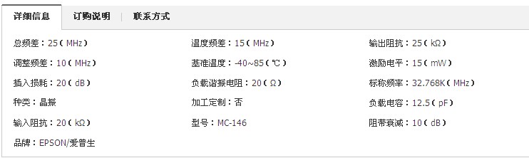 進口晶振自動彈出一串關于進口晶振子分類,找到愛普生晶振點擊進入可以看到愛普生進口產品相關圖片,滾動鼠標點擊第二頁可見MC-146愛