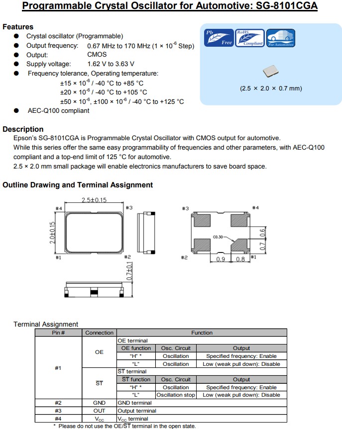 SG-8101CGA用于汽車電子專用晶振X1G005171001800,X1G005171004200,耐高溫晶振