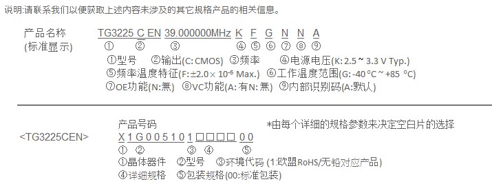 TG3225CEN(TCXO / VC-TCXO)振蕩器是愛普生推出的一款低電壓、高精度、CMOS輸出的壓控溫補晶體振蕩器.尺寸為:3.2 ×2.5 × 0.9mm,頻率范圍從12MHz to 52MHz,最為常用的頻率有27MHz、39MHz、40MHz等.愛普生VCXO壓控晶振電源電壓有2.8V ±5%、3.0V ±5%、3.3V可供用戶選擇.