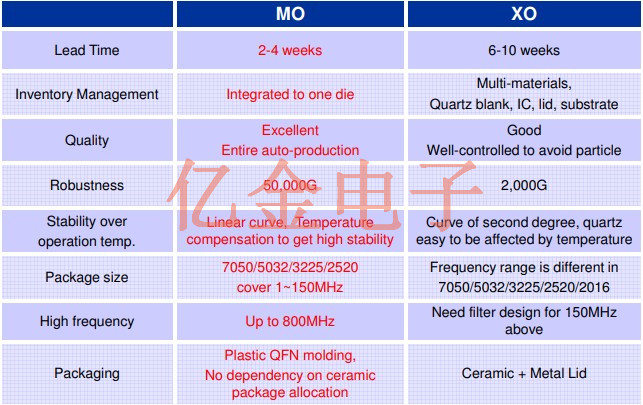 什么是MO?MO代表“MEMS振蕩器”.基于MEMS(微電子機械系統(tǒng))的定時解決方案,擁有良好的頻率穩(wěn)定性能.臺灣晶技MEMS振蕩器與XO振蕩器的BOM結構不同