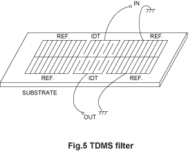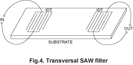 聲表面濾波器(看到)是一種聲波沿表面傳播的彈性基質,振幅的衰減指數與襯底深度.鋸可以生成和檢測到一個叉指式換能器(IDT)壓電襯底.看到的頻率(f)可以發現公式f = V /??哪里IDT時期,V波的速度.看到的傳輸速度隨襯底材料.例如,削減在圣看到石英的速度大約是3100米/秒.看到設備的最佳頻率范圍從10 mhz到2 ghz.的上限和下限的可用頻率看到設備是由精細圖案分辨率,和設備的尺寸和規格.