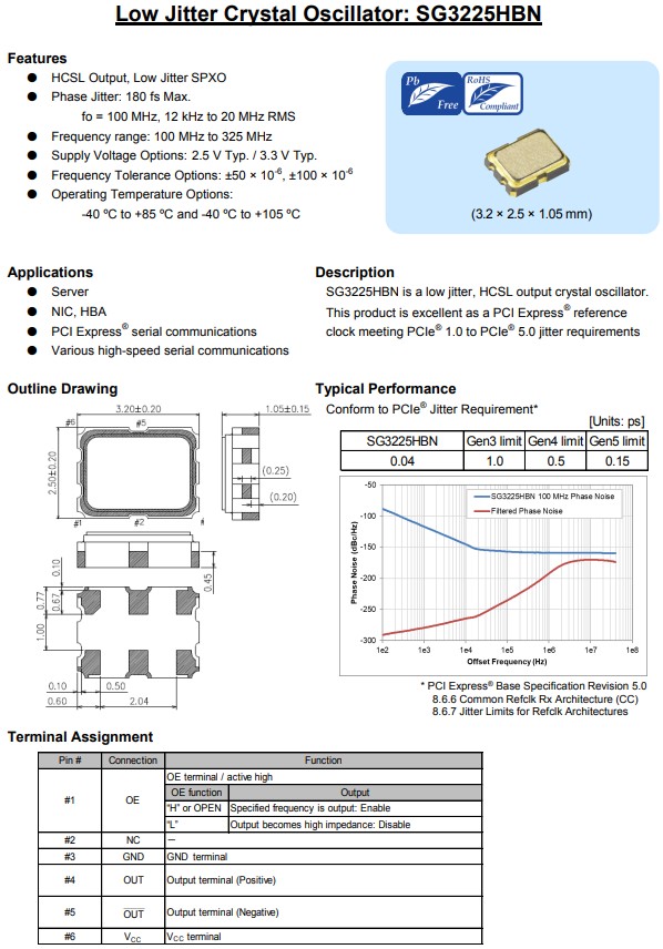| X1G005141000400 | SG3225HBN | 100.000000MHz | 3.20x2.50x1.20mm | HCSL | 3.135 to 3.465 V |