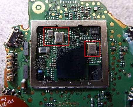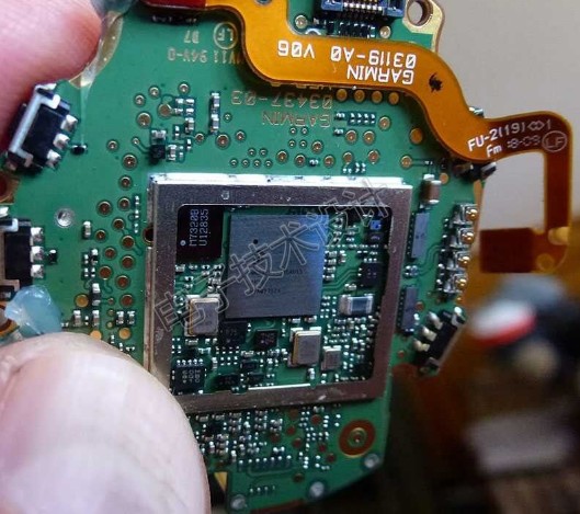它是主系統CPU,即飛思卡爾(現恩智浦)MK28FN2M0ACAU15 Kinetis K28基于Arm Cortex-M4的應用處理器.然而,法拉第籠一角有個大IC,其身份是個謎.另一款Garmin手表(型號:A03405)有塊類似IC,FCC有照片聲稱它是Wi-Fi收發器,但由于我們已經在PCB的另一側識別了該芯片,因此我們知道在這個特定設計中并非如此.