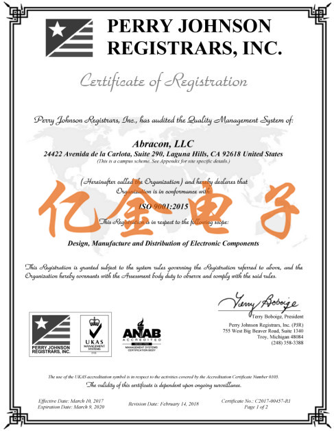 - [2019-03-01]Abracon晶振集團(tuán)不使用沖突礦物證書
