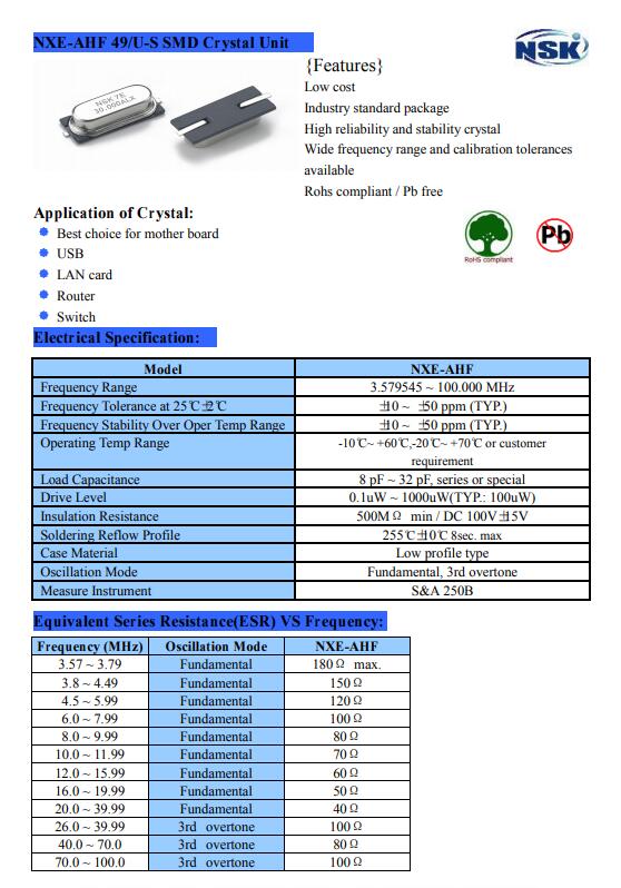 | Model | NXE-AHF晶振 |